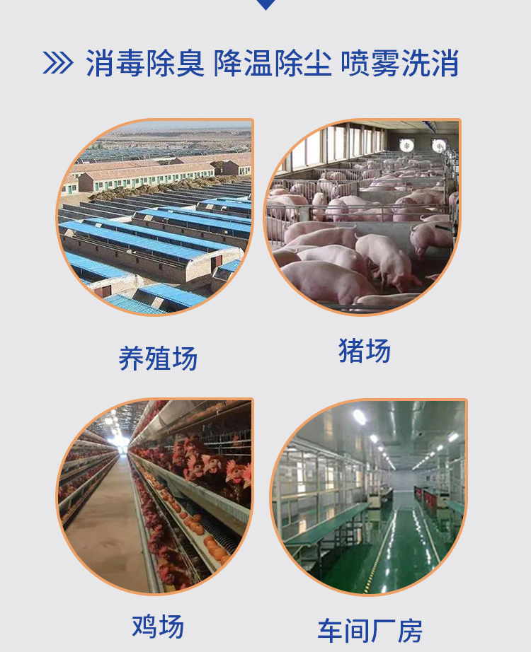 ?微小顆粒:通過高壓力將水或消毒液霧化成微小顆粒,通常在10微米到50微米的范圍內(nèi);? 均勻分布:能夠產(chǎn)生均勻細(xì)密的霧化效果,使微小顆粒均勻分布在空氣中或目標(biāo)表面上。這種均勻分布可以確保消毒液充分接觸到目標(biāo)區(qū)域的每一個角落,提高消毒效果;? 高效節(jié)水:高壓微霧產(chǎn)品能夠?qū)⒁后w轉(zhuǎn)化為更多的微小顆粒,從而實(shí)